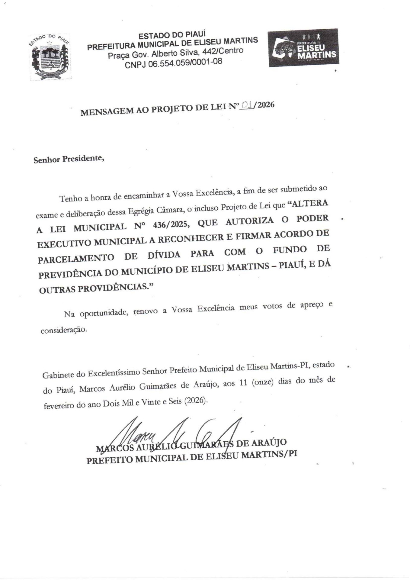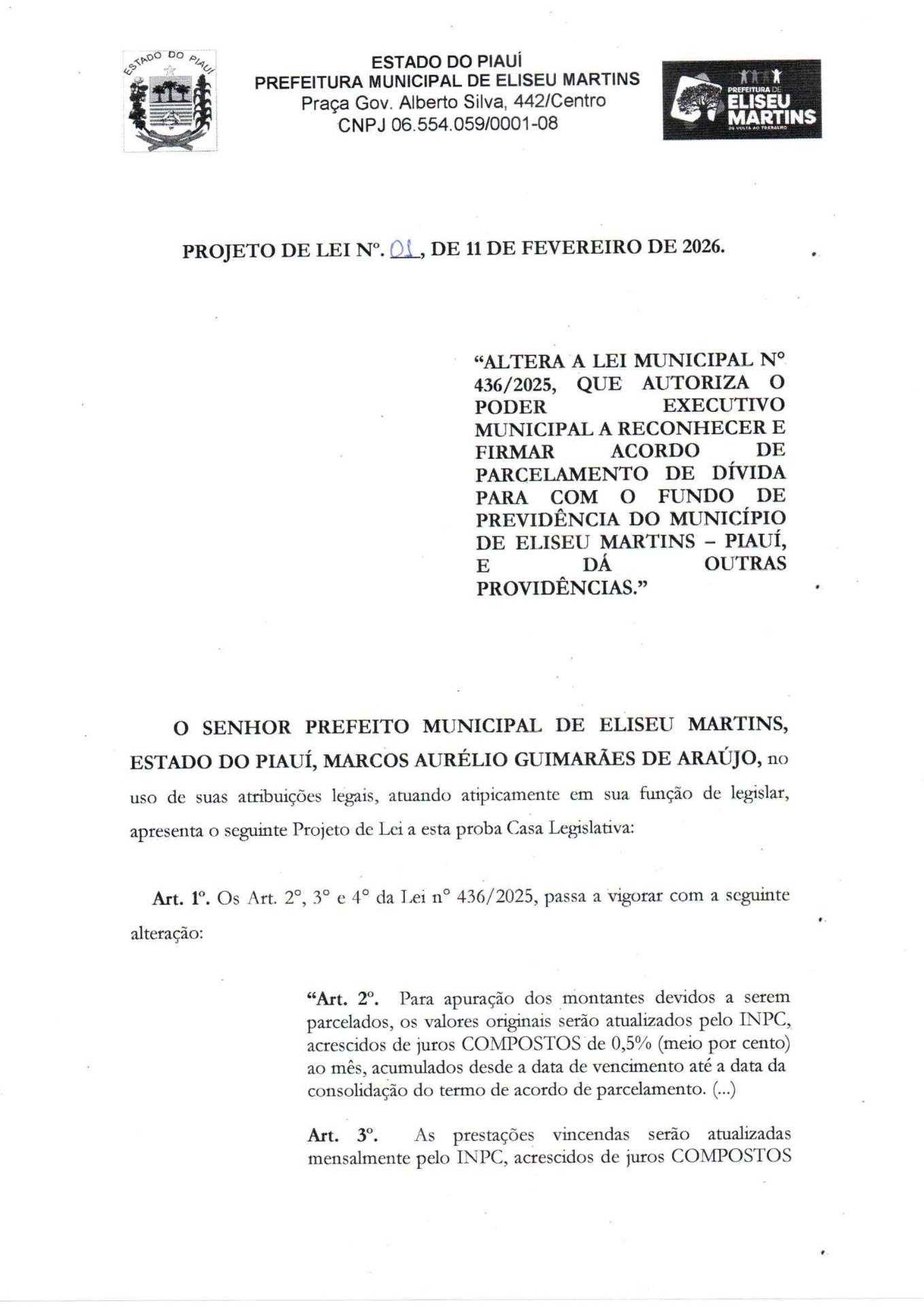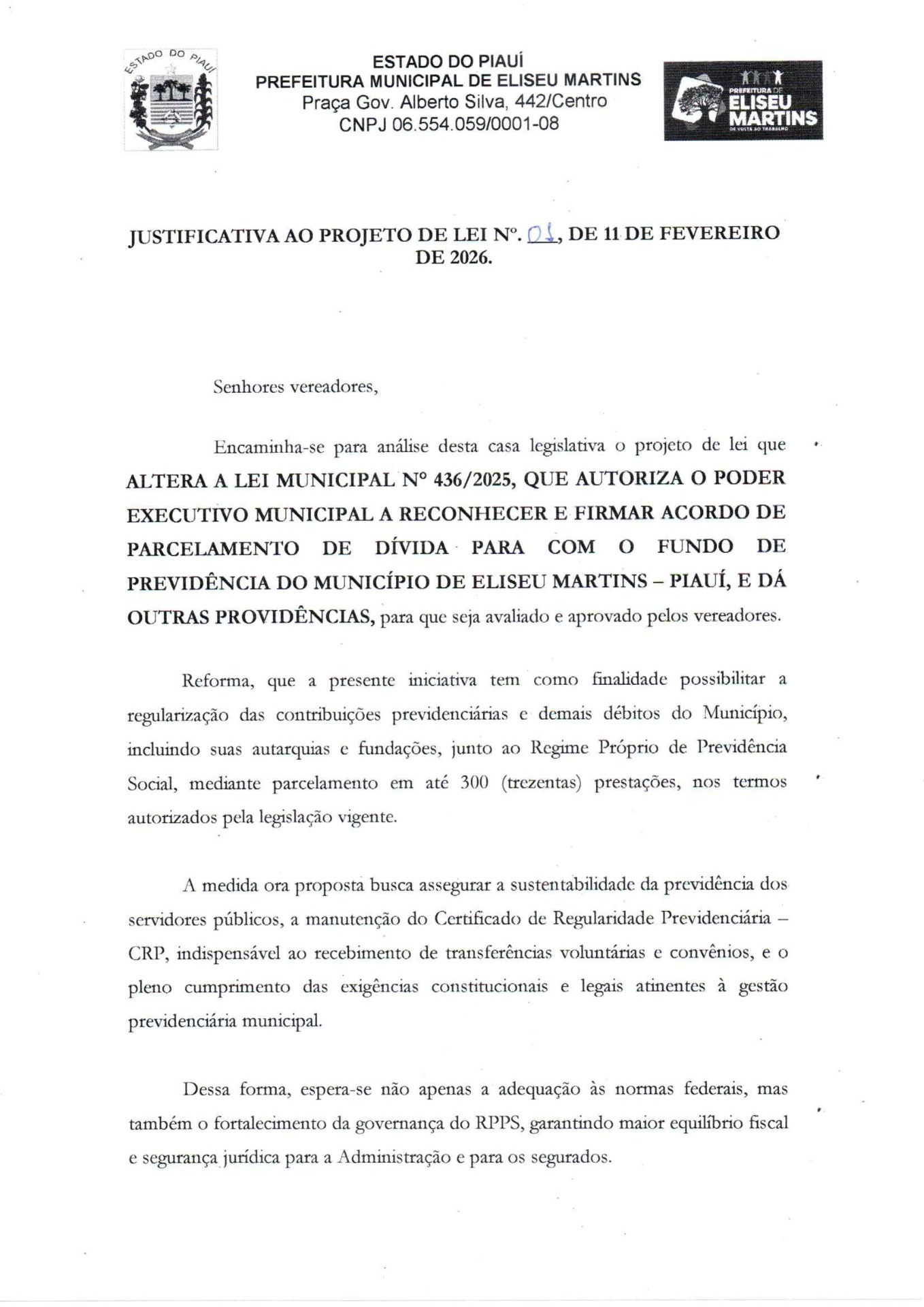 Menos de três meses depois de aprovar o parcelamento da dívida previdenciária de R$ 1,2 milhão em 300 parcelas, a Câmara de Eliseu Martins é novamente convocada para votar uma correção na própria lei que autorizou o acordo. O motivo: o Ministério da Previdência Social não aceitou os termos assinados pela Prefeitura em novembro.