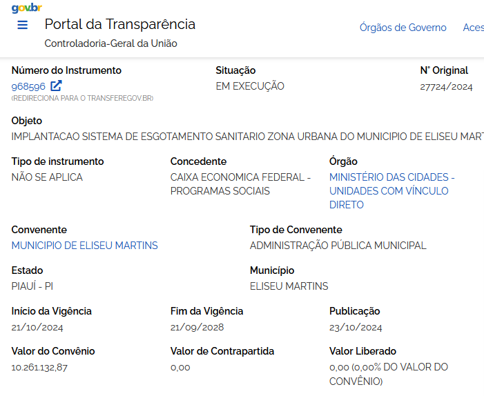 Eliseu Martins (PI) receberá mais de R$ 209 mil em recursos